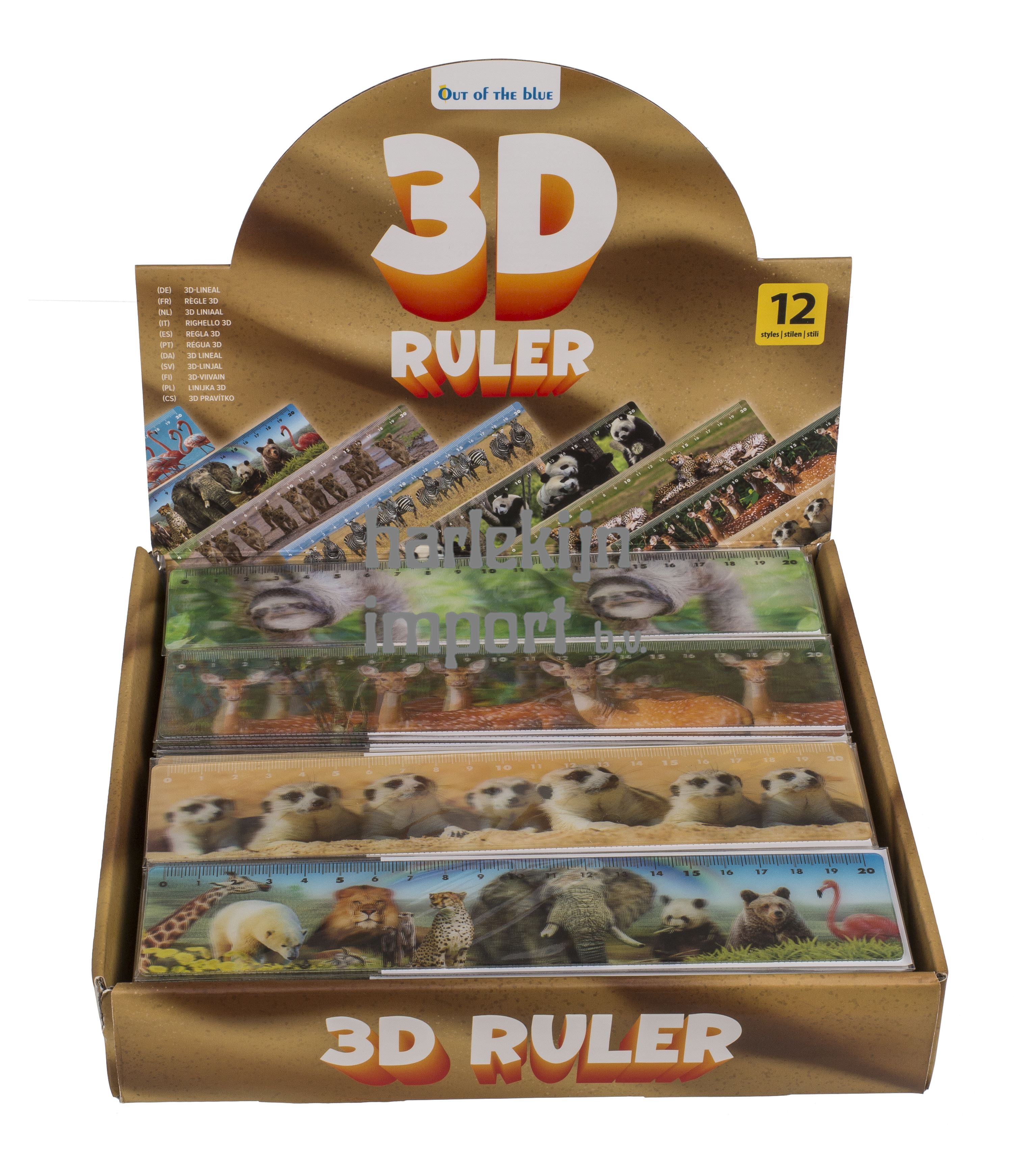 Dsp lineaal wilde dieren, 21x4,5 cm. 12 ass. 120 stuks ass in display.