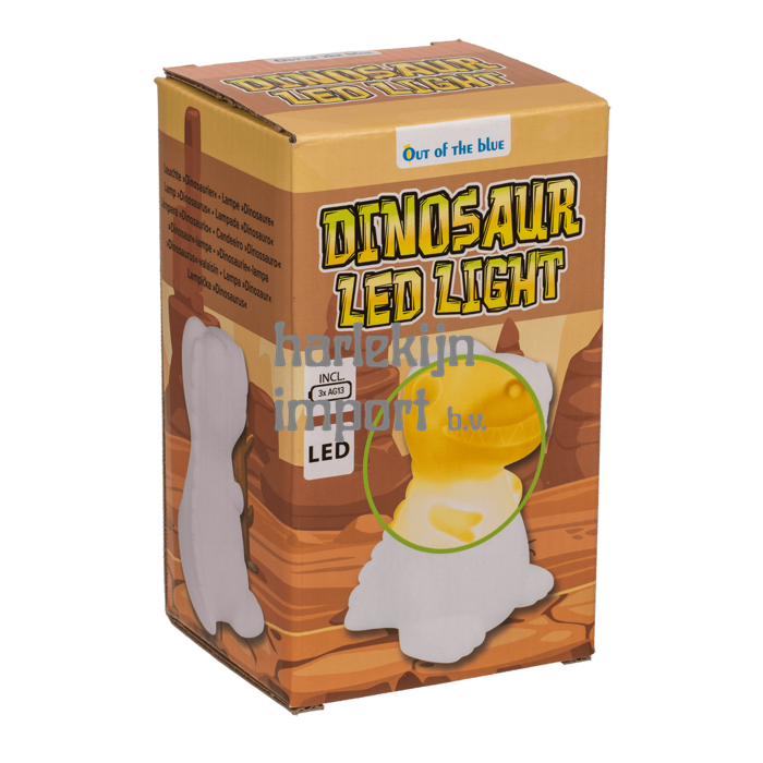 Lamp, dinosaurus met LED (incl 3 batterijen) ca. 16,5 x 13 cm. 2 assortie. Kunstof. |