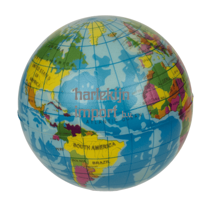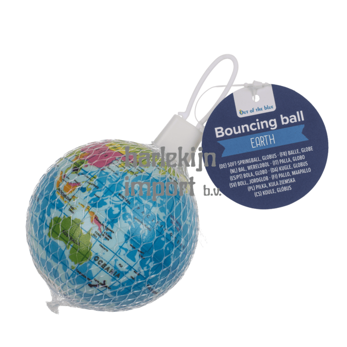 Zachte springbal, wereldbol, ca. 7,5 cm.