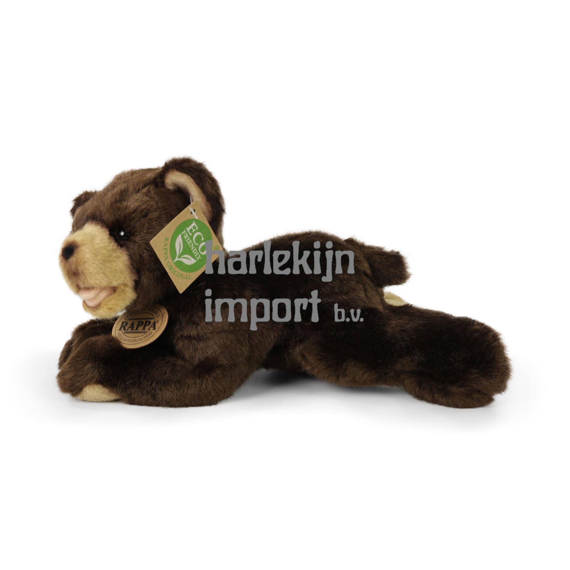Mooie liggende teddybeer van 24 cm. De beer is gemaakt van hoogwaardig pluche. Wat betekent ECO-FRIENDLY eigenlijk? De vulling van pluche speelgoed is gemaakt van gerecyclede PET-flessen. Dit materiaal is volkomen veilig, niet te onderscheiden van de standaard vulling en volledig gecertificeerd voor de veiligheid van de allerkleinsten. We hebben besloten om het groene pad zo milieuvriendelijk mogelijk te volgen - het ECO-FRIENDLY pad.