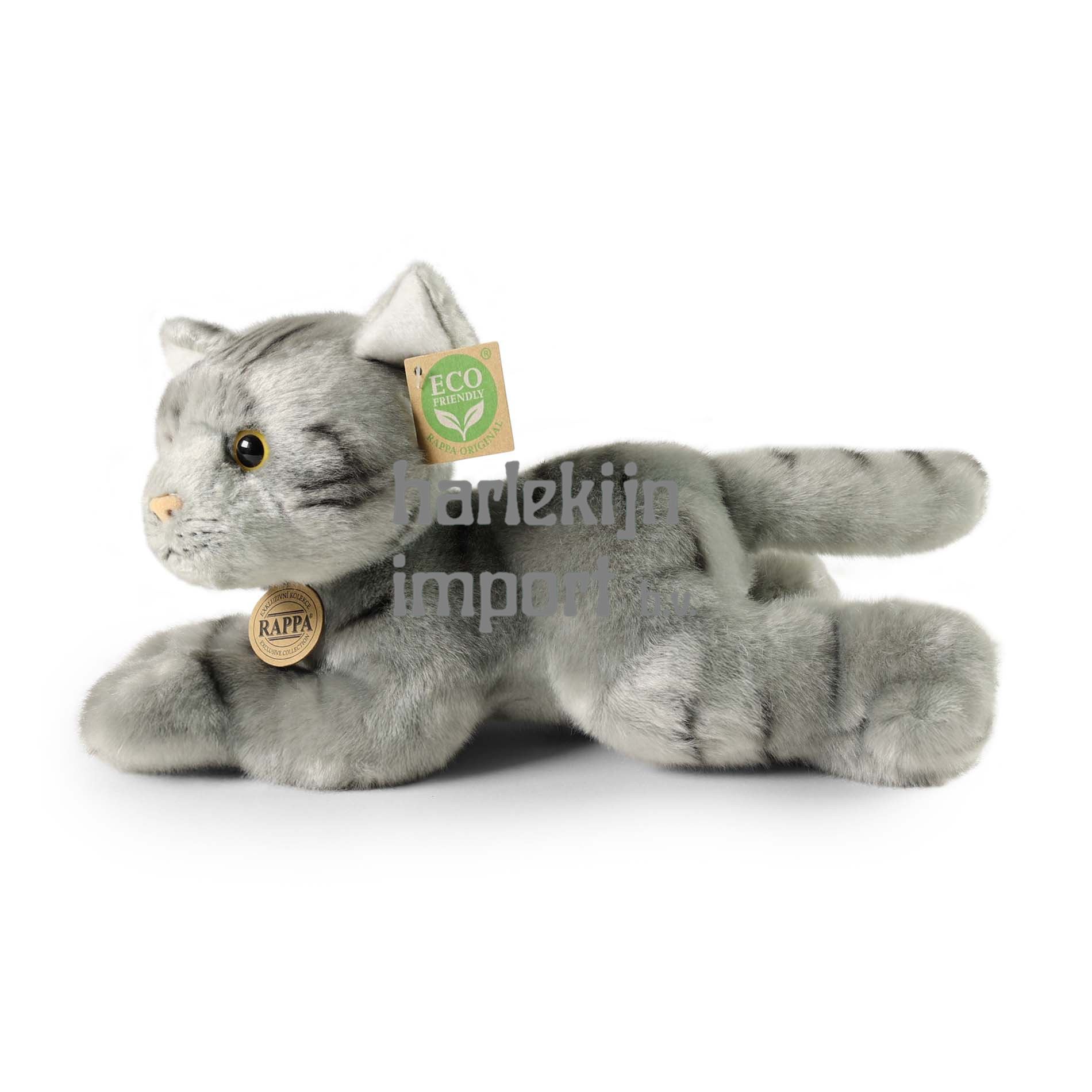 Een prachtige grijze pluche kat mag niet ontbreken in je collectie knuffeldieren! De schattige kat van 30 cm is gemaakt van hoogwaardige, zachte pluche, waardoor hij levensecht lijkt en deel uitmaakt van de exclusieve collectie van RAPPA-pluche speelgoed. Dit pluche exemplaar is een ideaal cadeau voor zowel kleine als grote liefhebbers van knuffeldieren! Wat betekent ECO-VRIENDELIJK eigenlijk? De vulling van het pluche speelgoed is gemaakt van gerecyclede PET-flessen. Dit materiaal is volledig veilig, niet te onderscheiden van de standaard vulling en volledig gecertificeerd voor de veiligheid van zelfs de kleinste kinderen. We hebben besloten de groene weg in te slaan, zo milieuvriendelijk mogelijk ? de ECO-VRIENDELIJKE weg.