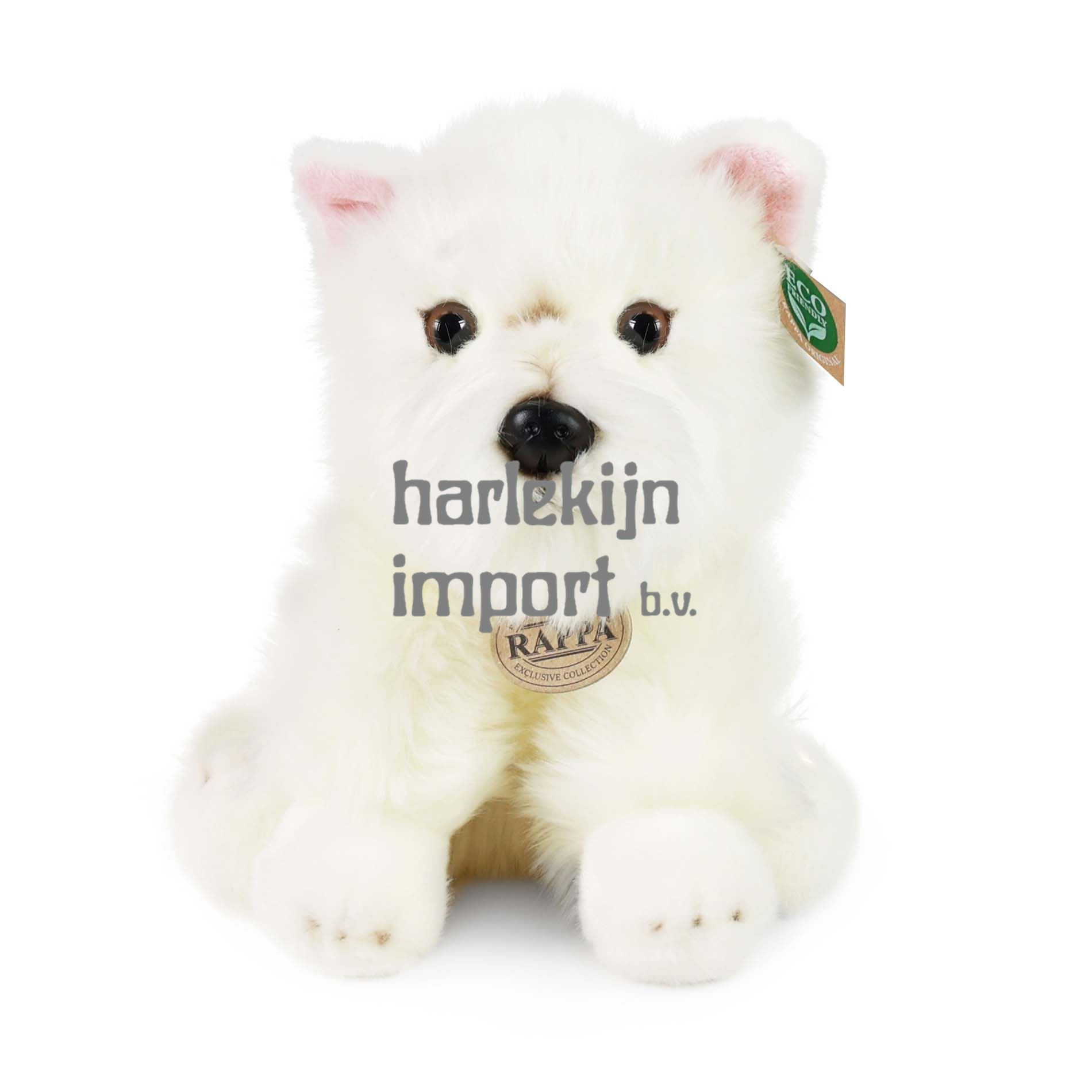 Schattige pluche hond West Terrier in maat 30 cm is gemaakt van exclusief, hoogwaardig pluche. Deze pluche hond maakt deel uit van een exclusieve collectie pluche speelgoed RAPPA. Wat betekent ECO-FRIENDLY eigenlijk? Pluche speelgoed infill is gemaakt van gerecyclede PET-flessen. Dit materiaal is volkomen veilig, niet te onderscheiden van de standaard vulling en volledig gecertificeerd voor de veiligheid van de allerkleinsten. We hebben besloten om het groene pad zo milieuvriendelijk mogelijk te volgen - het ECO-FRIENDLY pad.