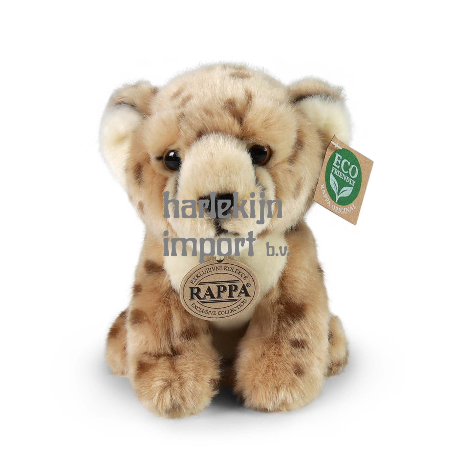 De prachtige pluche cheetah in de maat van 18 cm is gemaakt van exclusief, hoogwaardig pluche en maakt deel uit van de exclusieve collectie pluche speelgoed RAPPA. Dit sensationele pluche stuk is ook ideaal als cadeau! Wat betekent ECO-FRIENDLY eigenlijk? De vulling van de knuffel is gemaakt van gerecyclede PET-flessen. Dit materiaal is volkomen veilig, niet te onderscheiden van de standaard vulling en volledig gecertificeerd voor de veiligheid van zelfs de allerkleinsten. We hebben besloten om de groene weg te gaan, zo milieuvriendelijk mogelijk - de ECO-VRIENDELIJKE manier.