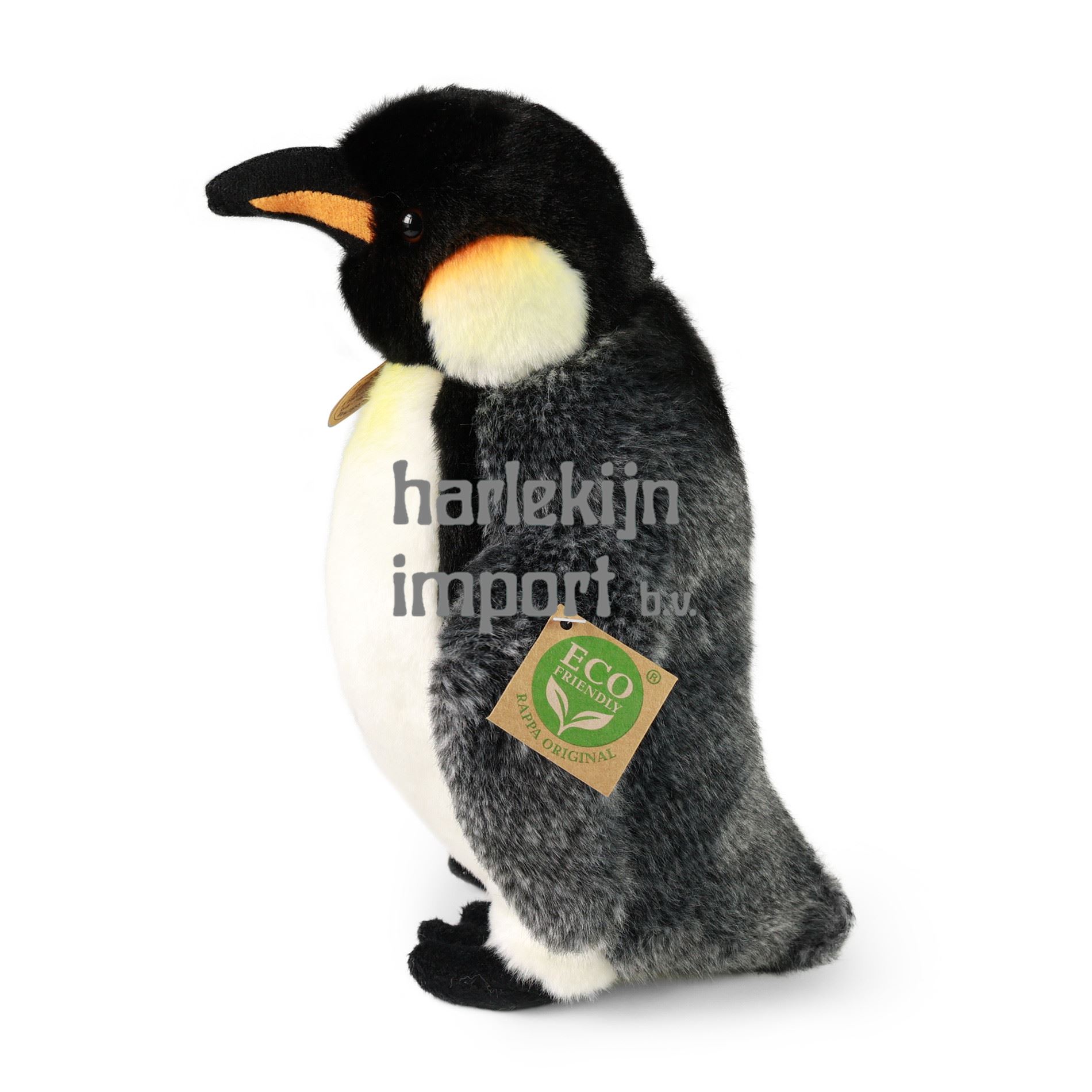 De pluche pinguïn van 27 cm is met de hand genaaid van hoogwaardig, zacht pluche, waardoor hij er levendig uitziet. Niet alleen vanwege zijn schattigheid, het wordt ook een welkome metgezel in elke kinderkamer. Het maakt deel uit van de exclusieve collectie knuffels RAPPA. We hebben besloten om de groene weg te gaan, die zo milieuvriendelijk mogelijk is - de ECO-VRIENDELIJKE weg. Wat betekent ECO-FRIENDLY eigenlijk? De vulling van de knuffel is gemaakt van gerecyclede PET-flessen. Dit materiaal is volkomen veilig, niet te onderscheiden van de standaard vulling en volledig gecertificeerd voor de veiligheid van zelfs de allerkleinsten.