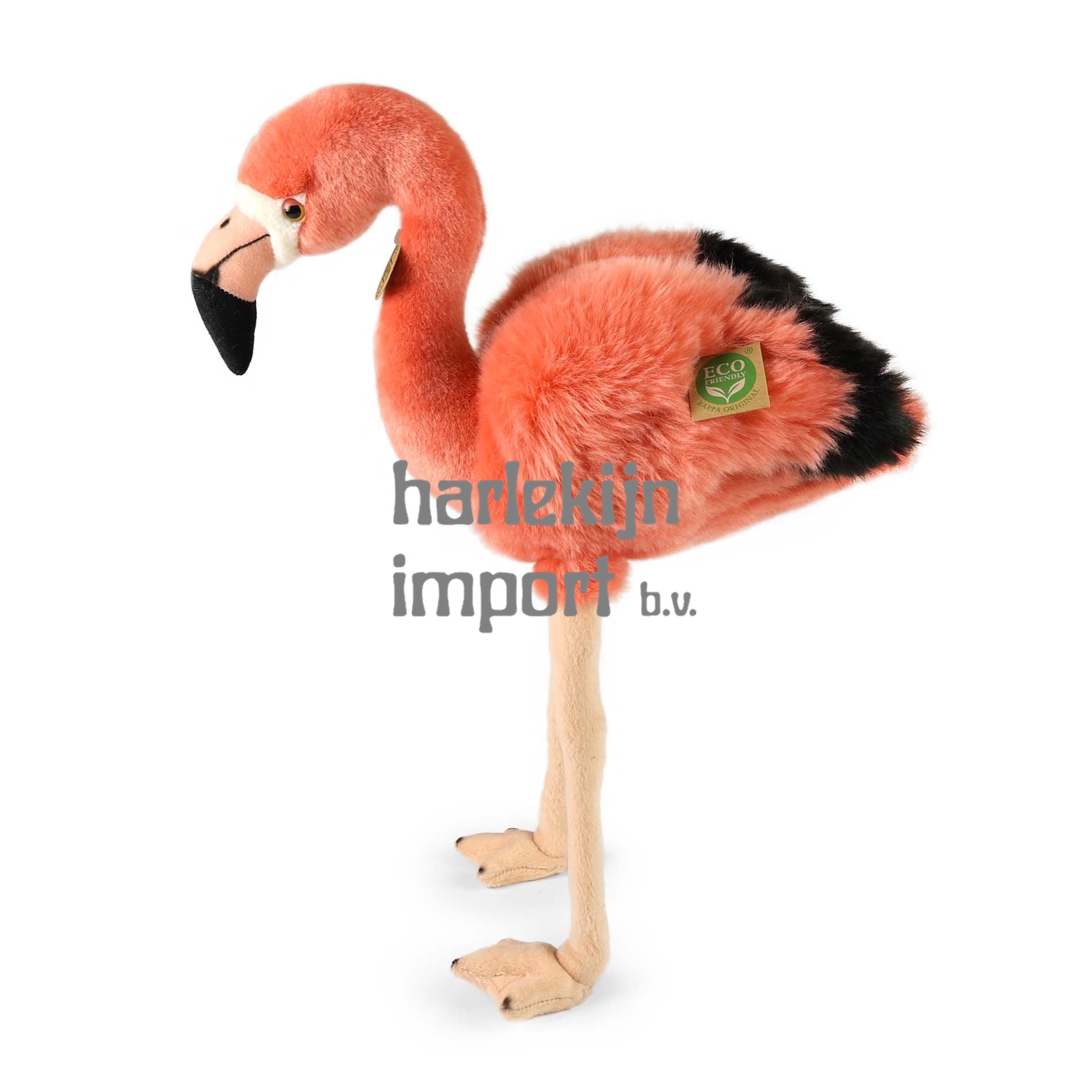 De pluche flamingo van 46 cm is met de hand genaaid van hoogwaardig, zacht pluche, waardoor hij er levendig uitziet. Het maakt deel uit van de exclusieve collectie knuffels RAPPA. We hebben besloten om de groene weg te gaan, die zo milieuvriendelijk mogelijk is - de ECO-FRIENDLY weg. Wat betekent ECO-FRIENDLY eigenlijk? De vulling van de knuffel is gemaakt van gerecyclede PET-flessen. Dit materiaal is volkomen veilig, niet te onderscheiden van de standaard vulling en volledig gecertificeerd voor de veiligheid van zelfs de allerkleinsten.