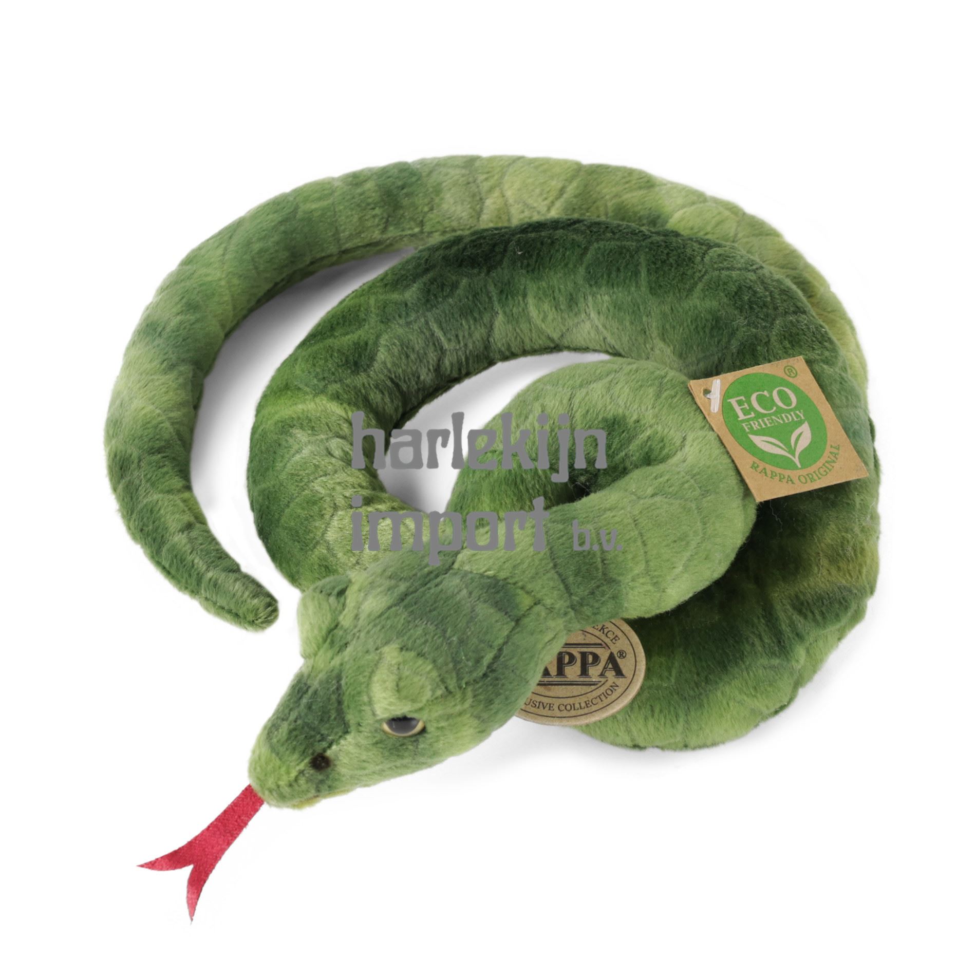 De pluche slang is met de hand gestikt van hoogwaardig, zacht pluche, waardoor hij er levensecht uitziet. Dit reptiel meet 90 cm en maakt deel uit van de exclusieve collectie RAPPA knuffels. We hebben besloten om de groene weg te gaan met de minste belasting van het milieu - de MILIEUVRIENDELIJKE manier. Wat betekent ECO-FRIENDLY eigenlijk? De vulling van de knuffel is gemaakt van gerecyclede PET-flessen. Dit materiaal is volkomen veilig, voelt niet aan van standaardvulling en is volledig gecertificeerd voor de veiligheid van zelfs de allerkleinsten.