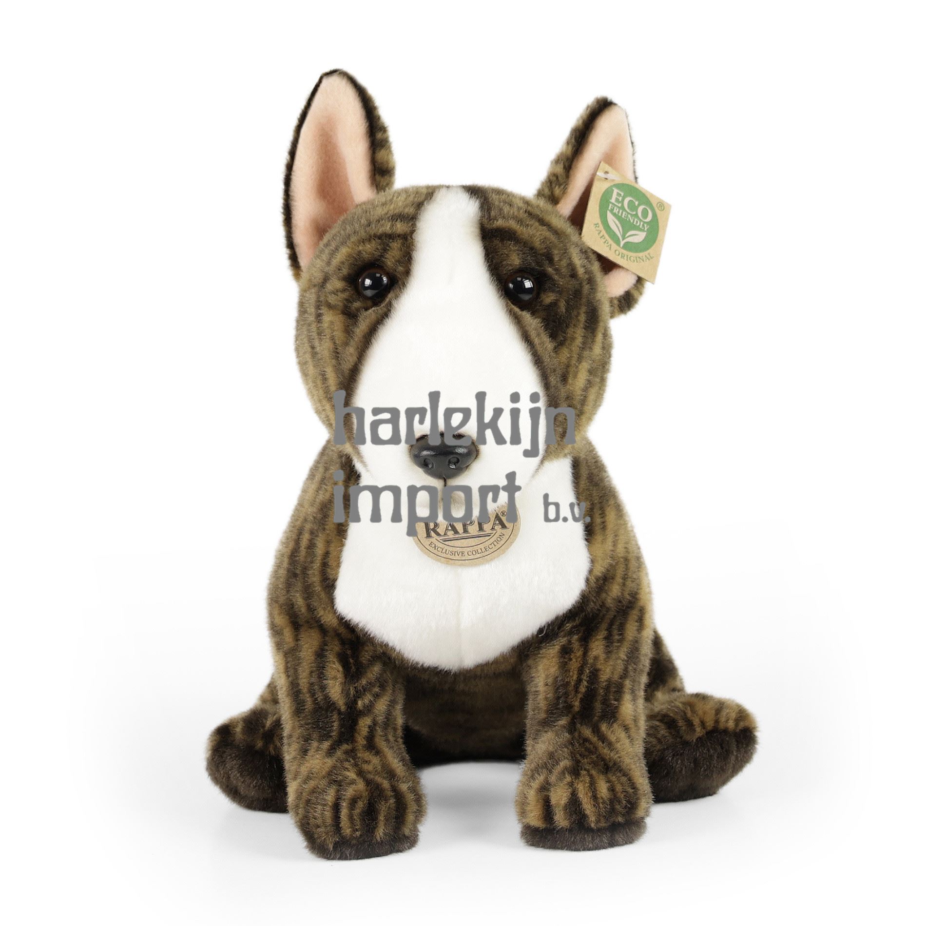 Pluche Engelse Bull Terriër hond in maat 30 cm is gemaakt van exclusief, hoogwaardig pluche. De pluche hond maakt deel uit van de exclusieve collectie RAPPA knuffels. Wat betekent ECO-FRIENDLY eigenlijk? De vulling van de knuffel is gemaakt van gerecyclede PET-flessen. Dit materiaal is volkomen veilig, voelt niet aan van standaardvulling en is volledig gecertificeerd voor de veiligheid van zelfs de allerkleinsten. We hebben besloten om de groene weg te gaan met de minste belasting van het milieu - de MILIEUVRIENDELIJKE manier.