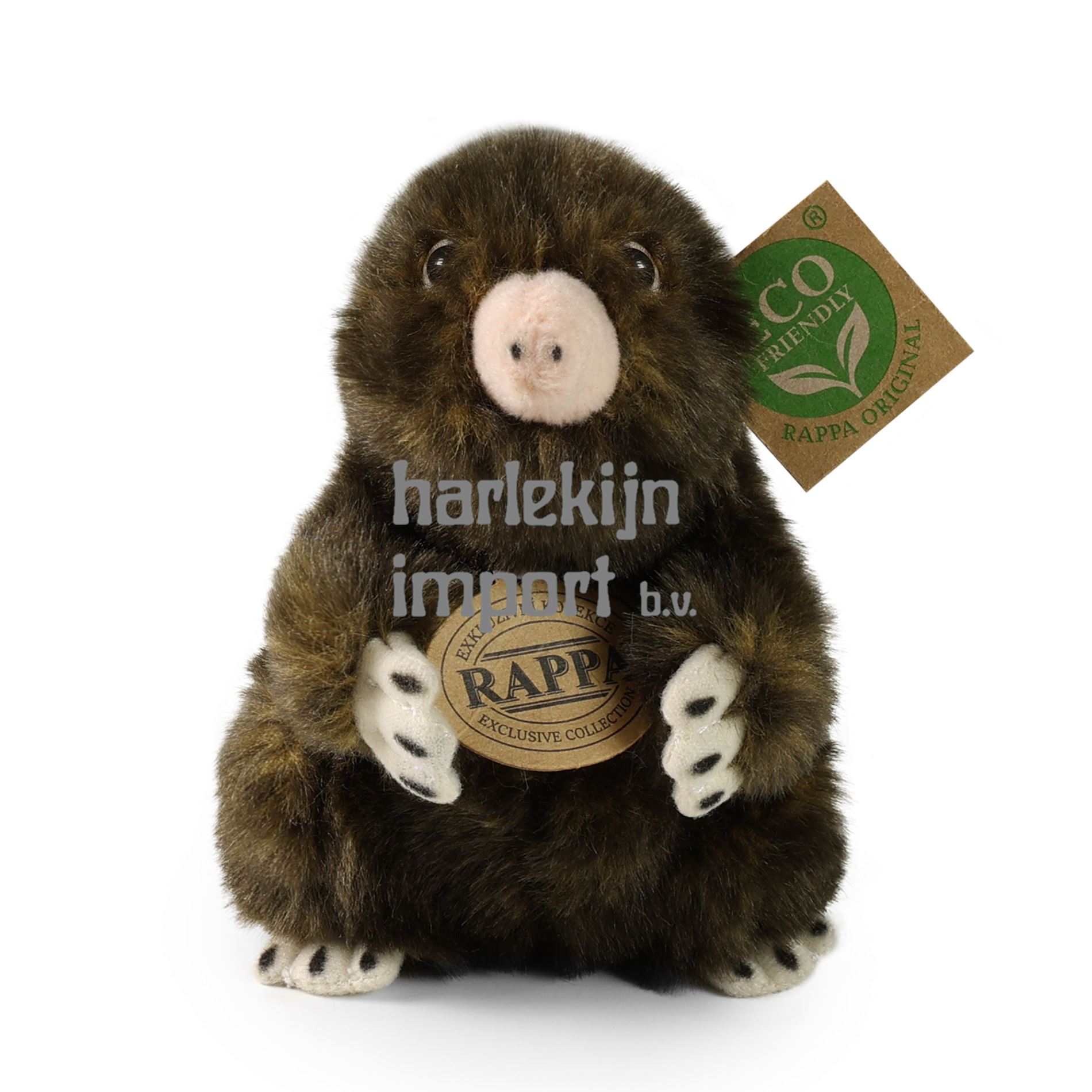 Pluche mol meet 15 cm en behoort dankzij de materialen van de hoogste kwaliteit tot de Exclusieve Collectie knuffels van het merk Rappa. Dankzij de handgemaakte verwerking van elk stuk ziet het er ook nog eens levendig uit. Waarom het ECO-FRIENDLY label? Rappa is zich bewust van alle milieueffecten, richt zich op duurzaamheid en het tot een minimum beperken van het gebruik van plastic. Daarom is de speelgoedvulling gemaakt van gerecyclede materialen, met name PET-flessen. Het is echter volkomen onschadelijk en geschikt voor kinderen vanaf de geboorte. LEUK WEETJE: Wist je dat een mol op één dag tunnels tot wel 20 meter lang kan graven?