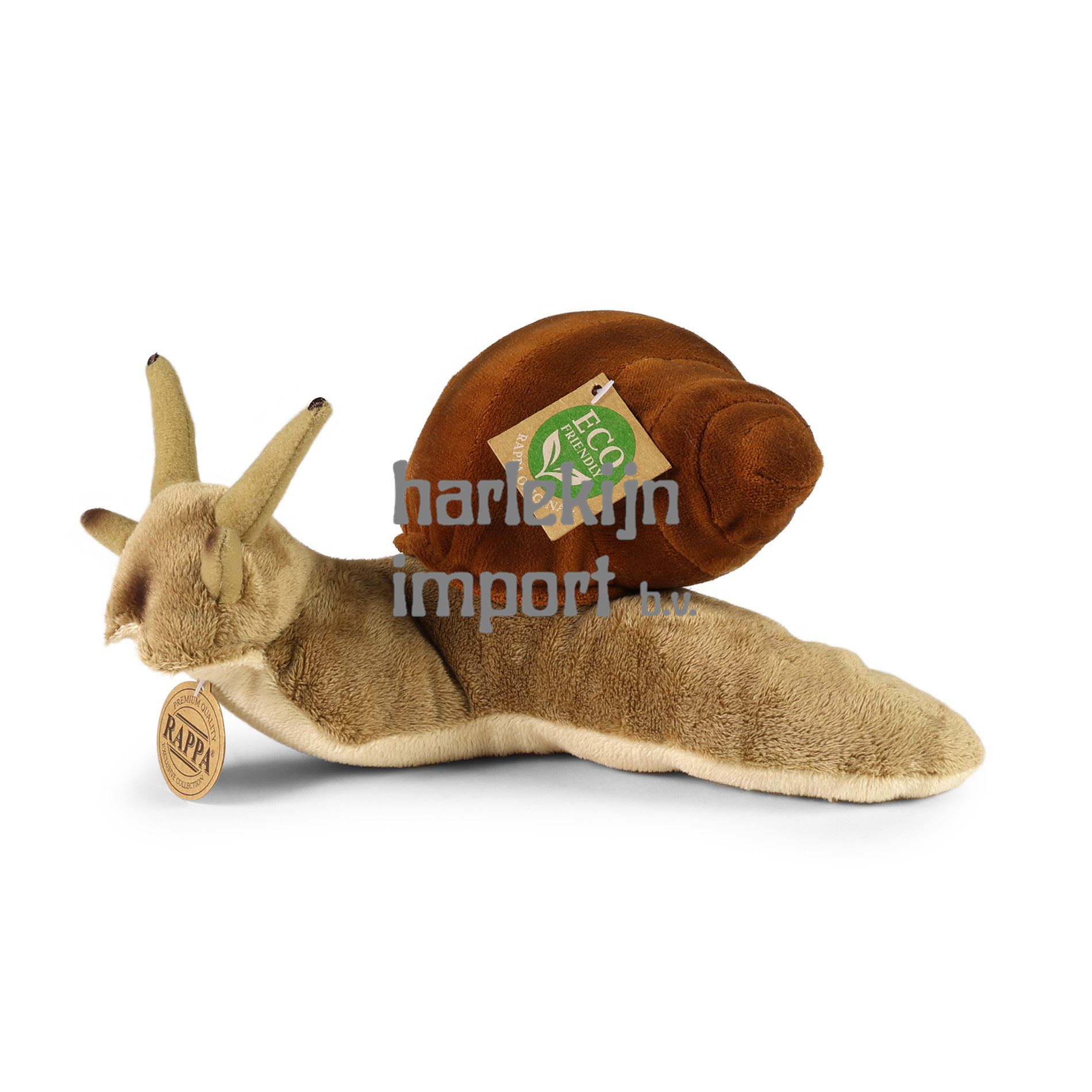 Een pluche slak meet 24 cm en dankzij de hoogste kwaliteit materialen behoort hij tot de Exclusieve Collectie knuffels van het merk Rappa. Dankzij de handgemaakte bewerking van elk stuk ziet het er ook levendig uit. Waarom het label ECO-FRIENDLY? Rappa is zich bewust van alle milieueffecten, richt zich op duurzaamheid en het minimaliseren van het gebruik van plastic. Daarom is de speelgoedvulling gemaakt van gerecyclede materialen, vooral PET-flessen. Het is echter volledig onschadelijk en vanaf de geboorte geschikt voor kinderen. LEUK WEETJE: Wist je dat de tong van een slak, de zogenaamde radula, bedekt is met duizenden kleine tandjes en dat de slak deze "rasp" gebruikt om zijn voedsel te schrapen zodat hij het kan eten?