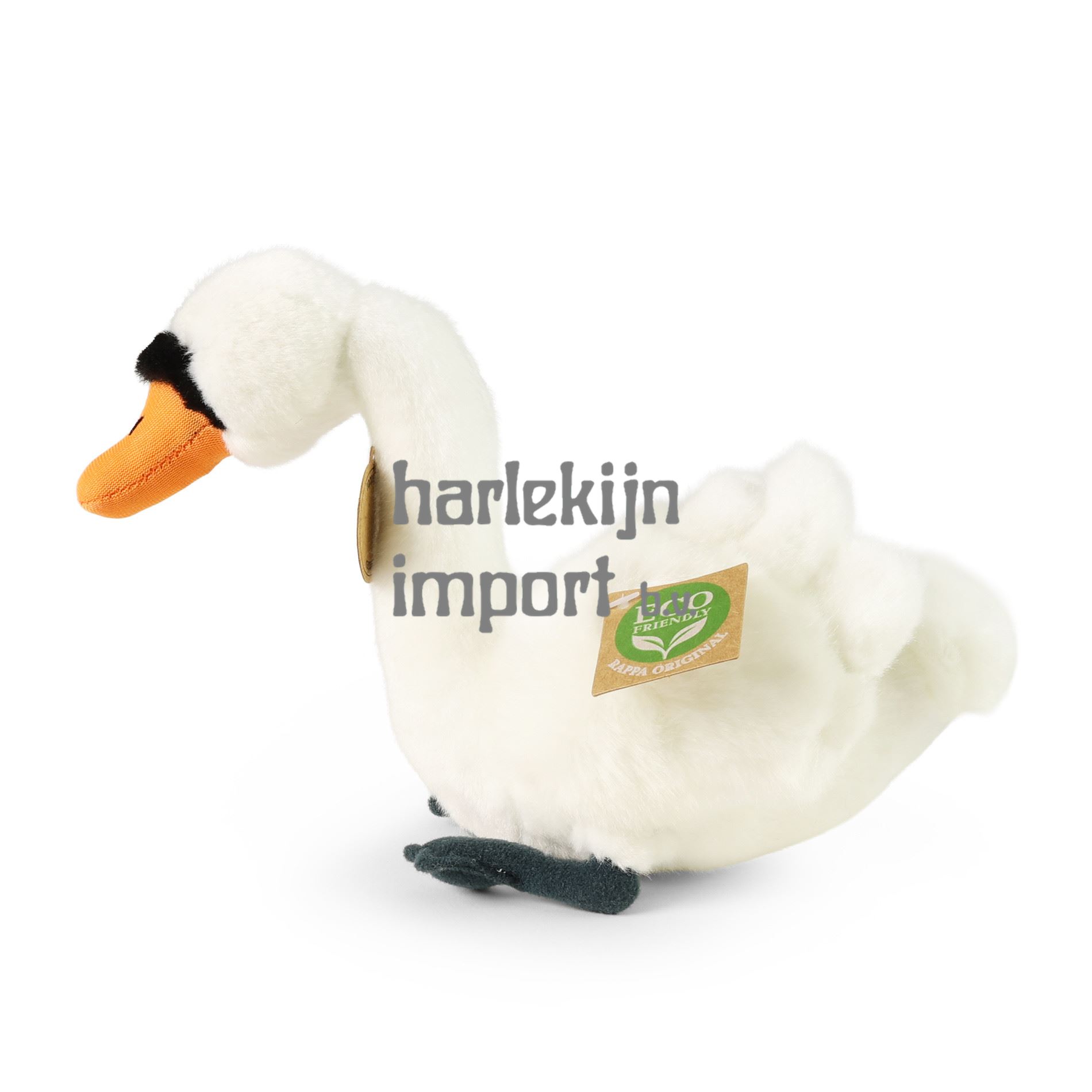 De pluchen zwaan heeft een afmeting van 20 cm en behoort dankzij het gebruik van materialen van de hoogste kwaliteit tot de Rappa Exclusive Collection van pluchen speelgoed. Elk stuk is handgemaakt, wat zorgt voor een levensechte uitstraling. Waarom het ECO-FRIENDLY label? Rappa is zich bewust van alle milieueffecten en richt zich op duurzaamheid en het minimaliseren van het gebruik van plastic. Daarom is de vulling van het speelgoed gemaakt van gerecyclede materialen, met name PET-flessen. Het product is volledig onschadelijk en geschikt voor kinderen vanaf de geboorte. Wist je dat zwanen meestal hun hele leven trouw blijven aan één partner?