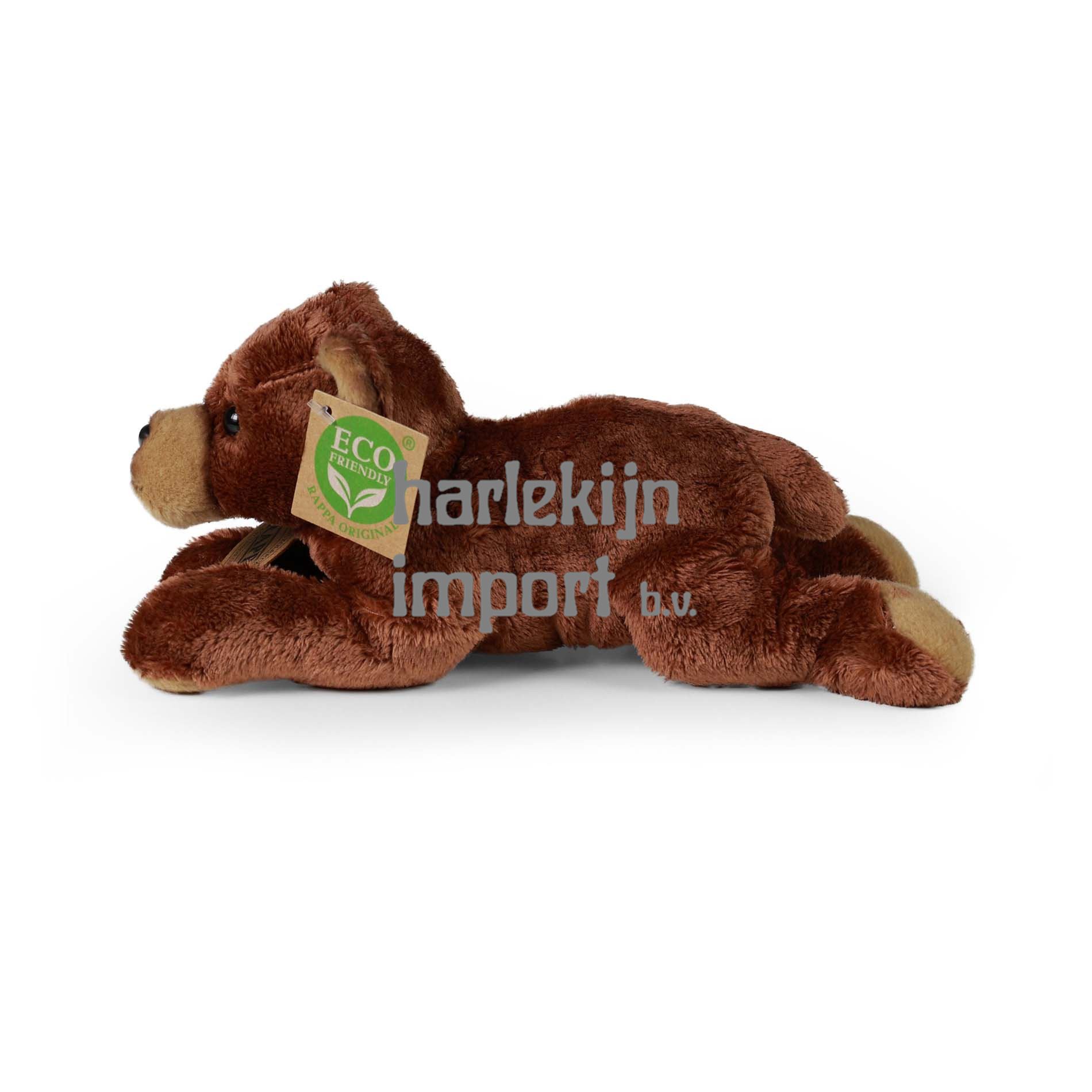 Liggende teddybeer, onderdeel van de exclusieve collectie van RAPPA-pluche speelgoed. Grootte: 23 cm. Wat betekent ECO-VRIENDELIJK eigenlijk? De vulling van het pluche speelgoed is gemaakt van gerecyclede PET-flessen. Dit materiaal is volledig veilig, niet te onderscheiden van de standaard vulling en volledig gecertificeerd voor de veiligheid van baby's. We hebben besloten de groene weg in te slaan, zo milieuvriendelijk mogelijk ? de ECO-VRIENDELIJKE weg.