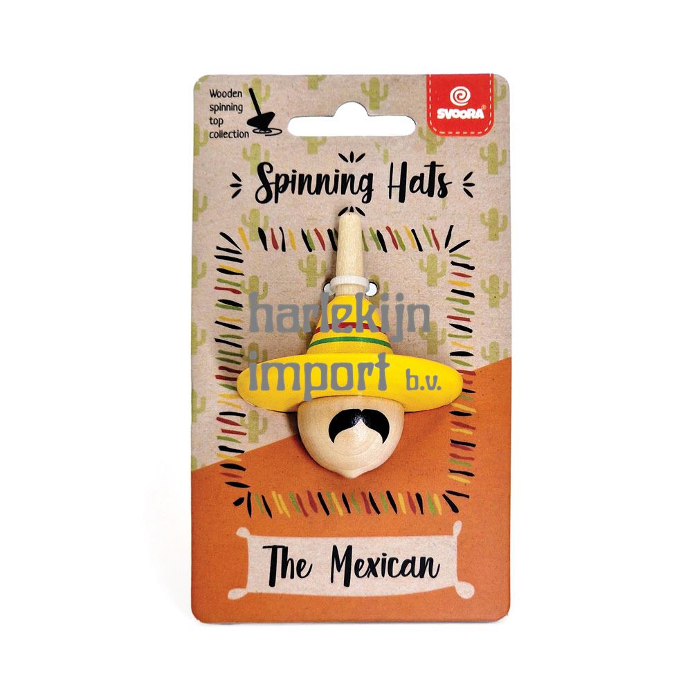 Draaihoed met houten bovenkant. Tol. De Mexicaan. 5+ |