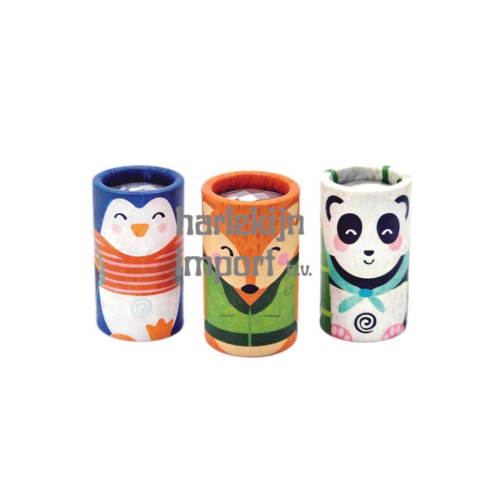 Het display bevat 4 mini-caleidoscopen 'Families' van elk ontwerp: Panda, Fox en Penguin.