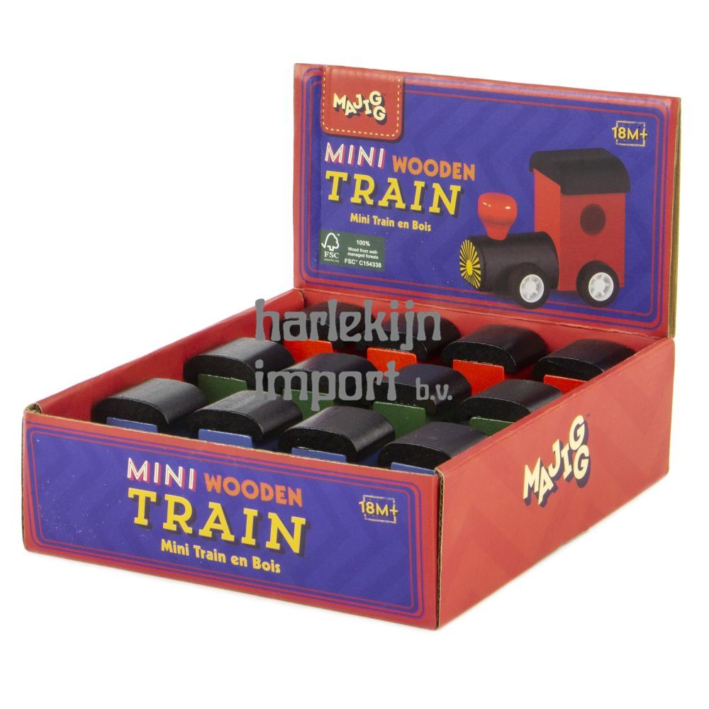 Allemaal aan boord van de MAJIGG Mini Steam Train! Deze charmante houten trein is gemaakt van duurzaam FSC-hout en heeft de tijdloze aantrekkingskracht van klassieke stoomtreinen. De gladde randen en levendige kleuren maken het een genot om mee te spelen en te verkennen. Duw de trein over het spoor en laat de fantasie van uw klanten de vrije loop. De Mini Steam Train is gemaakt met het oog op duurzaamheid en stimuleert milieuvriendelijk spelen en stimuleert tegelijkertijd de creativiteit en de ontwikkeling van fijne motoriek. Bevoorraad uw winkel met dit houten speelgoed in de groothandel dat nostalgische charme combineert met duurzame materialen. Kijk voor onze FSC-gecertificeerde® producten.